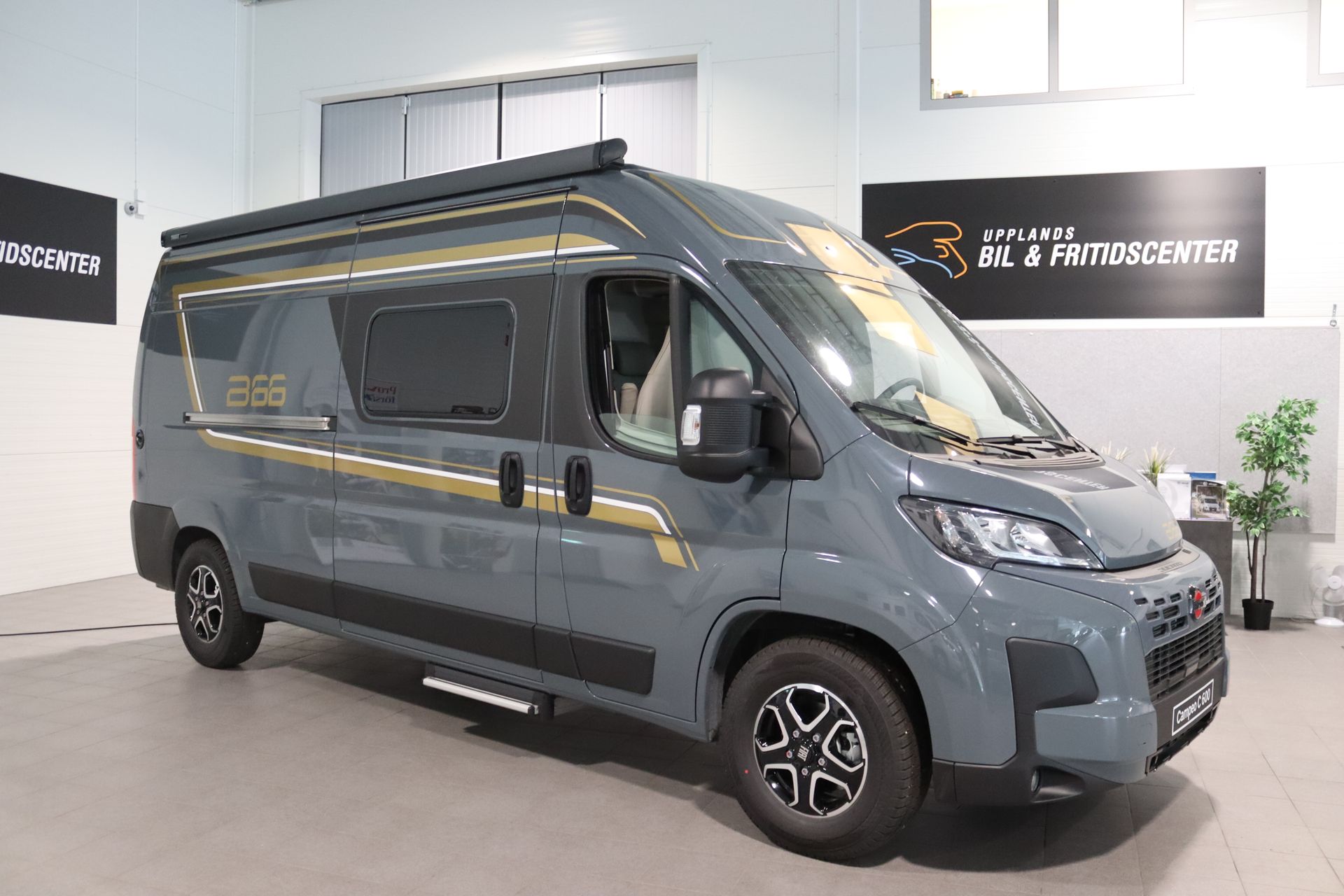 Bürstner B66 C600 modellår 2026 finns nu att beställa till kampanjpriset 799 900kr och den är utrustad med bland annat: 140hk Fiat motor, Automatväxellåda, 16-tums aluminiumfälgar,Kompressorkylskåp 84 l (varav frysfack 6 l),Multimediasystem inkl. backkamera, Markis i antracit – 3,75 m, Myggnätsplissé för skjutdörr,Instegshjälp för dubbelsäng bak, 2-lågig spis med integrerad diskho och separat glaslock , Truma Combi 6 E med elpatron mm